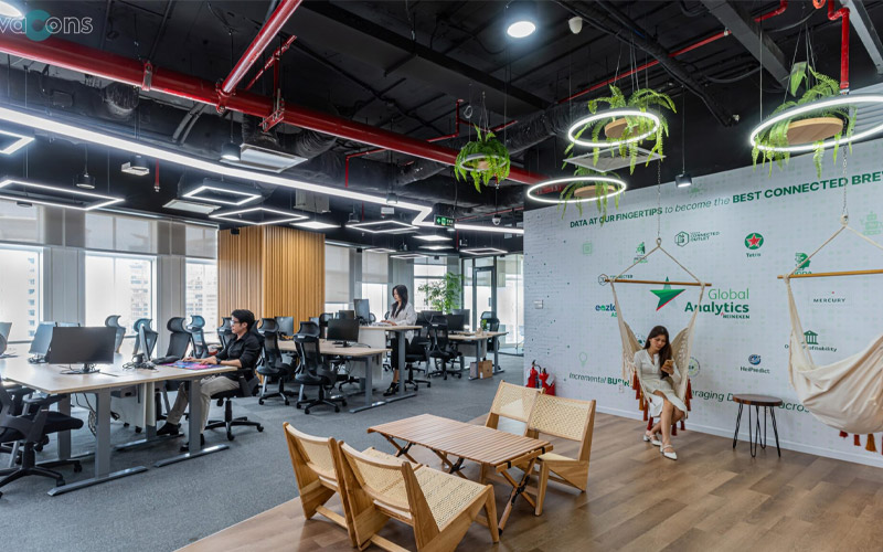 Không gian làm việc hiện đại cần có sự cân bằng giữa làm việc, nghỉ ngơi. Thiết kế phòng họp nhỏ, phòng brainstorm, khu vực yên tĩnh (Quiet Zones) phục vụ cho các công việc cần sự tập trung cao độ. Đồng thời, bố trí văn phòng làm việc phải có khu vực nghỉ ngơi, giải trí (Games, Cà phê) để nhân viên tái tạo năng lượng sau thời gian làm việc căng thẳng. Sử dụng cây xanh, yếu tố thiên nhiên (biophilic design) là xu hướng thiết kế đang thịnh hành. Tạo cảm giác thư thái, giảm thiểu căng thẳng hiệu quả.